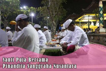 Santi Puja di Pura adalah doa bersama yang dilaksanakan oleh Pinandita dan umat, di Pura yang akan melaksanakan Pujawali ...